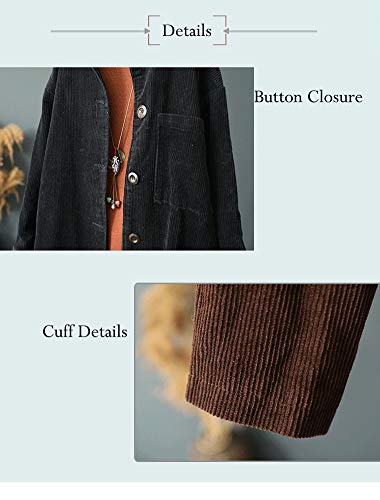 Fabric type: 100% CottonCare instructions: Machine WashFEATURES:This women's button down shirt is designed with corduroy,shirt collar,one front pockets,trendy solid color made a casual loose style.MATERIAL:This corduroy jacket for women is made of cotton material,it's a warm and comfortable fabric, suit for the autumn and winter seasons. basic dress,Or match with leggingsSIZE INF:There are many sizes of this long sleeve swing coat for women in fashion style,which you can choose from: M, L, XL, XXL; Please check the βSize Chartβ and product descriptions clearly before purchasing!OCCASION:Women's brown trench coat, perfect for any occasions, such as date, casual, party, work, vacation, outdoor, club, travel......COLLECTION: This women's long shacket jacket is suitable for shirt,turtleneck sweater,denim,casual pants... ATTENTION:Hand wash recommended,do not bleach,hang dry. Perfect for everyday use. supreme materials and excellent craftsmanship ensure long-lasting durability.