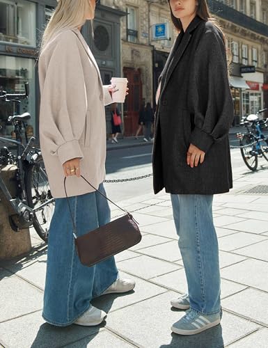 Womens Winter Coats Trendy Wool Blend Overcoat Oversized Balloon Sleeves Outerwear with Pockets