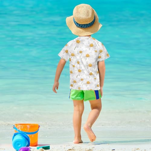 popular ! ALAZA Kids Rash Guard Girls Toddler Swim Shirts Short Sleeve White Daisy Cute UPF 50+ 3T