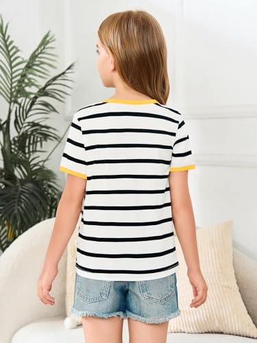 Haloumoning Girls Short Sleeve T Shirts Kids Summer Striped Tops Crewneck Tees 5-14 Years