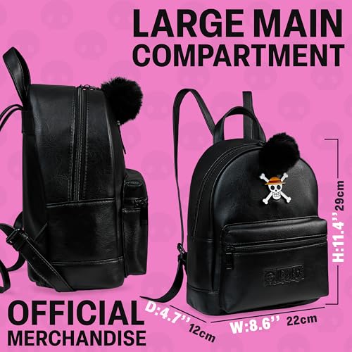 Anime Mini Backpack for Women: Show your One Piece fandom with this mini backpack for women, featuring an anime print, faux leather, black pom pom, and bold emblem for travel, school, work, and moreSpacious with trendy Storage: Includes a large zipped main section, front pocket, padded inner compartments, and vertical zip pocket, keeping your phone and must-haves organized in this small backpackComfortable for Daily Wear: Built for all-day comfort, this small backpack for women has adjustable straps that fit teens and adults alike, ideal for use as a travel backpack or fashion accessoryVersatile Faux Leather Bag: Crafted from durable PU leather, this mini backpack works as a fashion daypack, rucksack, or purse for women who love anime gifts and stylish bags for womenGift for Anime Fans: This mini backpack can be given as anime gifts for birthdays, or holidays, and is ideal for women, girls, and teens who want a One Piece functional purse a cute backpack vibe Perfect for everyday use. supreme materials and excellent craftsmanship ensure long-lasting durability.