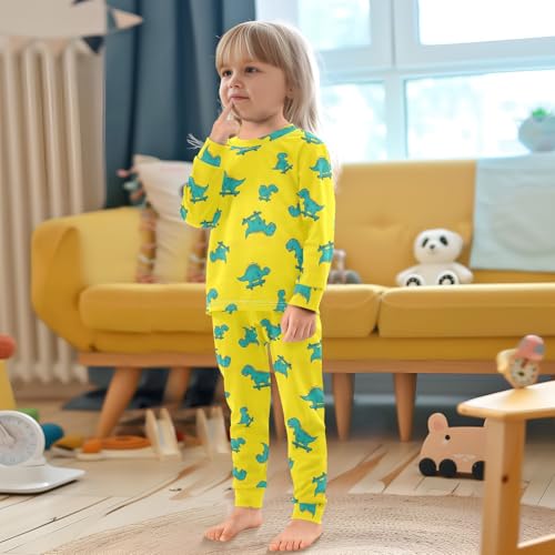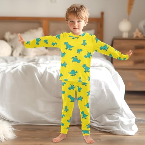 Pajama Sets Long Sleeve Dinosaurs Skateboarding Yellow supple Comfy Sleepwear 2 Piece PJS 3-8T