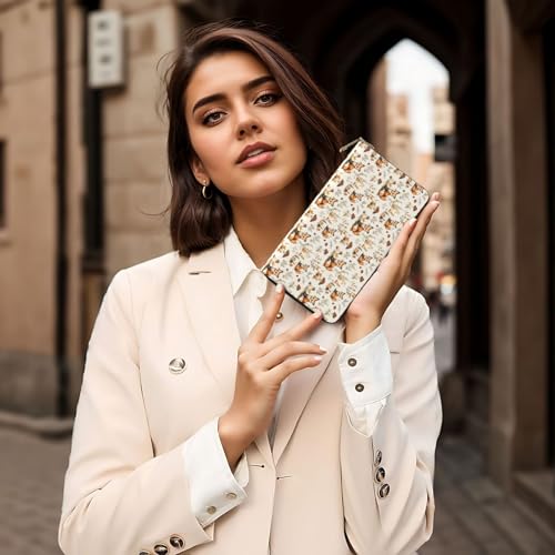 popular ! Cute Mushroom Fox Print Wallet Women Men, Long PU Leather Wallets for Women, Cute Womens Travel Wallet Purse Pouch with Zipper Pocket