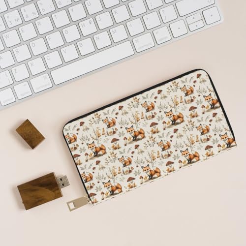 More information about Cute Mushroom Fox Print Wallet Women Men, Long PU Leather Wallets for Women, Cute Womens Travel Wallet Purse Pouch with Zipper Pocket