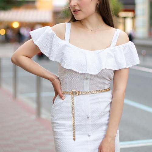 Gold Waist Chain Belt Gold Chain Belts for Women Adjustable Dress Belt Fashion Chunky Chains Belts for Dress Body Waist Link Chunky Chains for Jeans Dresses