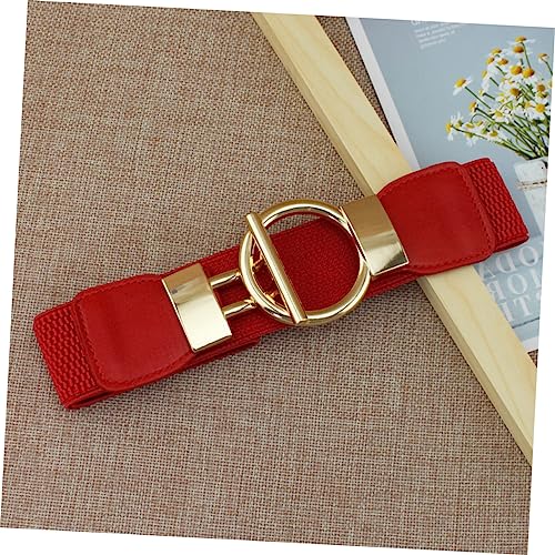 Why Choose SAFIGLE 1Pc Wide Elastic Waist Belt for Women Stretch Cinch Belt with Golden Round Pin Buckle Versatile Solid Waistband Red for Dresses Jeans and Casual Outfits?