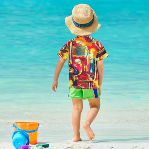 popular ! Boys Short Sleeve T-Shirts Fire Engine Truck Doodle Rashguard Kids Swim Shirts Sun UPF 50+ Multicoloured