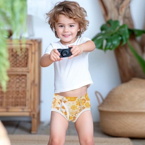KLL Vintage Yellow Orange Floral Pattern Toddler Boys' supple Underwear Breathable Children Undies