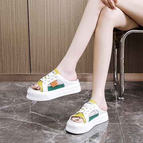 Women's Anti-Slip Platform Sandals Breathable Adjustable Lace-Up Open Toe Mules Summer Lightweight Cushioned Indoor Outdoor Casual Shoes
