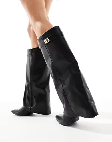 Sole material: RubberOuter material: Faux LeatherClosure type: Pull-OnHigh Heel Knee Boots for Women: 3 inches chunky heel tall boots for easy walking, easy to get on & off, and more trendy.Classic design: Sexy women's high boots boot are made from high-quality PU leather, classic fashion design and durable to wear stylish toe with stiletto heel and long-wearing rubber sole for a more comfy feeling.Fold Over Knee High Boots: Crafted from smooth finish PU leather, breathable lining and padded insole, these womens knee high boots are comfortable in all seasons.Shark boots style: These short shark boots for women feature a Pointed Toe style that is perfect for any fashion-forward woman looking to make a statement.Knee-high design: The knee-high boots for women fits a classic and timeless stiletto design that is perfect for dancing balls, evening parties, musical festivals, concerts, weddings, bachelorette parties, and more. Perfect for everyday use. supreme materials and excellent craftsmanship ensure long-lasting durability.
