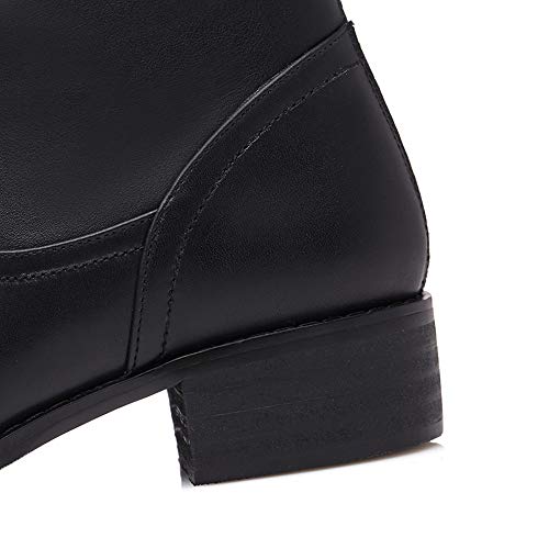 • sleek knee high boots designed with genuine leather, round toe, low chunky heel, buckle and back zip can make you feel cushy