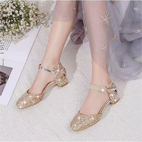 popular ! AOQUNFS Girls Dress Shoes Sequin Latin Ballroom Dance Shoes Mary Jane Low Heels Wedding Party Sandals,DS-63