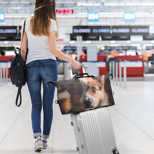 Large Travel Duffel Bag, Sunlight Puppy Sports Tote Gym Bag, Shoulder Weekender Overnight Bag for Women Men, Carry On Luggage with Toiletry Bags
