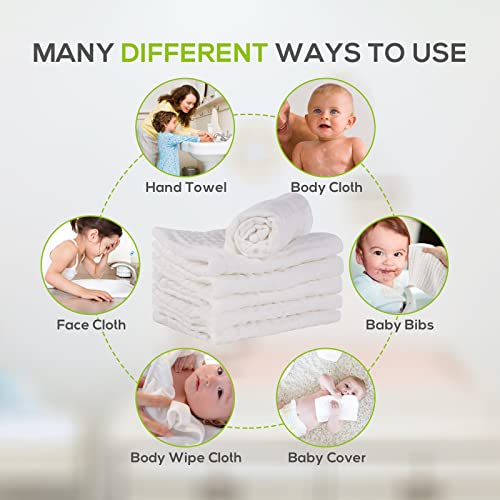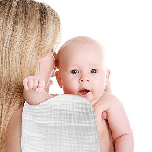 Joysiya 100% Cotton Muslin Burp Cloths for Baby 10 Pack of Large 20" x 10" supple and Absorbent Washcloths for Boys and Girls White