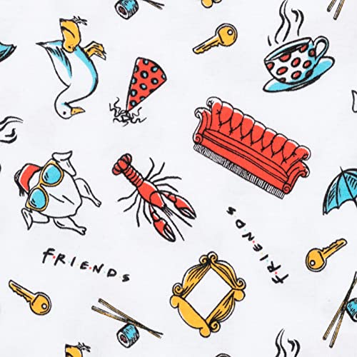 • wonderful screen print design featuring the Friends logo, an awesome all over art design with iconic Friends items such as the Central Perk couch, and Joey's timeless catchphrase "How You Doin'?"
