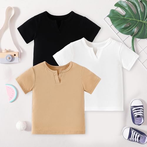 OPAWO Toddler Boy Shirts 3 Pack, V-Neck Short Sleeve Toddler Tshirts, Blank Baby Tee Shirts Summer Tops 12 Months-5T