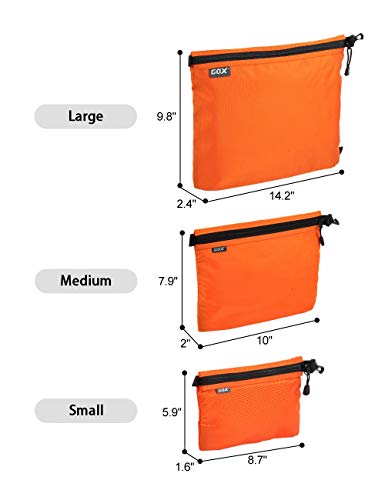 GOX 3 Pack Travel Toiletry Bag for Men Carry On Packing Organizer Zipper Pouch Portable Cosmetic Pouch Accessory Document Electronics (Orange)