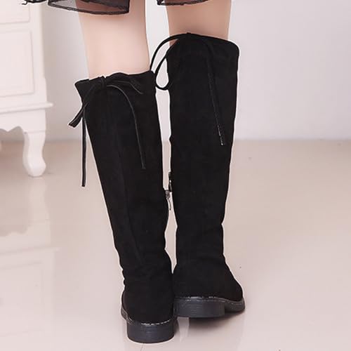 More information about Girls Knee High Boots Winter Flocked Back Lace-Up Boots Side Zipper Fashion Little Kid/Big Kid Boots