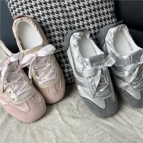 popular ! Sneakerina Ballerina Sneakers for Women Slip On Ballet Flats Lace-up Comfort Wear Tennis & Racquet Sport Shoes Breathable Lightweight Leather Cute Bow Back to School Gifts for Daughter Granddaughter