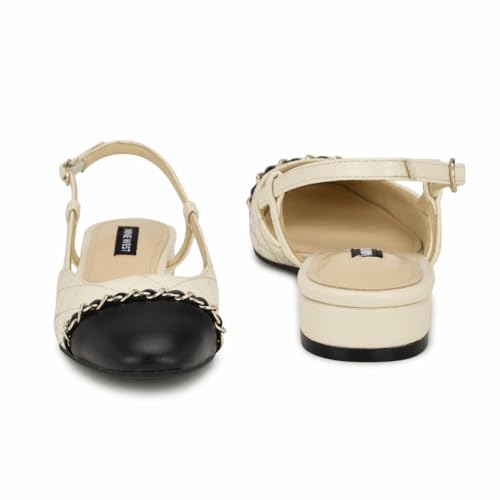 Origin: ImportedSole material: Synthetic RubberOuter material: DenimClosure type: BuckleDress to impress in the Nine West Charme dress flat. It features a slingback adjustable ankle strap for a secure fit and chain detailing on the upper. This flat is sure to turn heads! Founded in 1978, Nine West empowers women to take on the world in style, from day to night.Square Toe ; Buckle ClosureTextile Upper1.26 heel height flawless for everyday use. supreme materials and excellent craftsmanship ensure long-lasting durability.