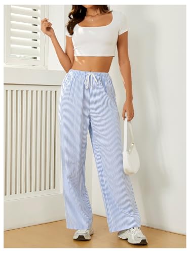 - Features: stripes print, drawstring waist, slant pockets, casual long pants for women, straight leg linen pants