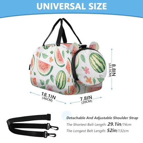 Duffle Bag for Boys or Girls with Shoes Compartment, Watermelon Leaves Pattern Sports Travel Bag Overnight