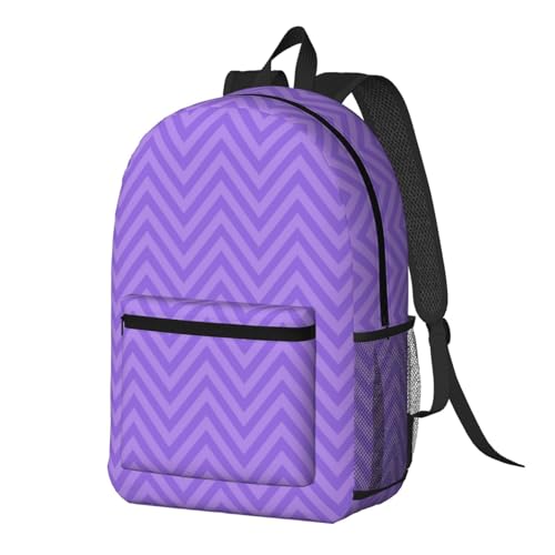 Purple Wavy Stripes Fashionable Daypack 17 Inches Zippers Backpack Double Shoulder Bag for Women Men