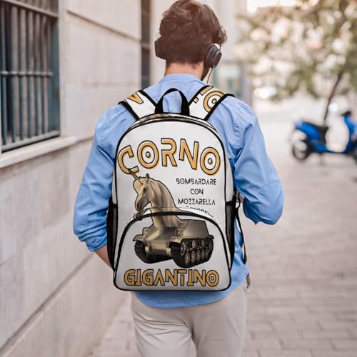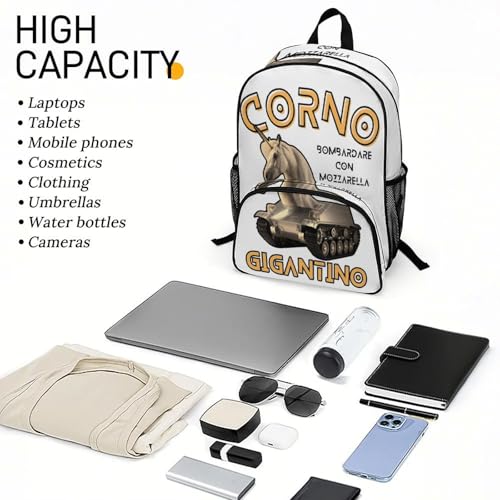 popular ! Corno-gigantino Merch Large Travel Backpack Italian-Brainrot Meme Waterproof Lightweight Daypack White 44x32x19cm