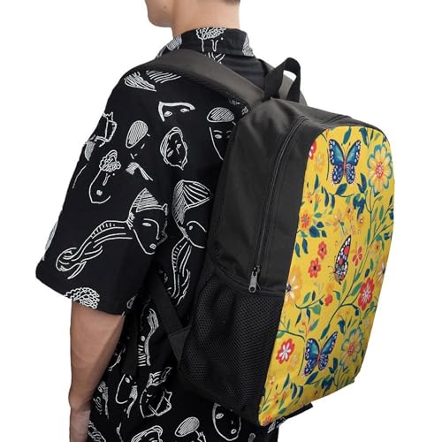 Colorful Butterfly and Flowers 17 Inch Backpack enduring Travel Daypack with Adjustable Shoulder Straps for Men Women
