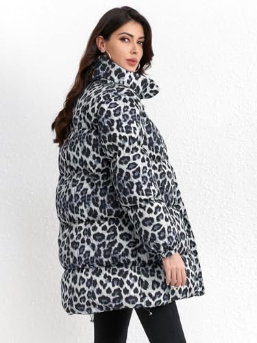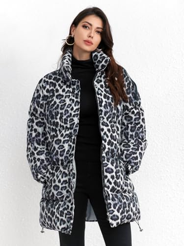 More information about utcoco Womens 2024 Fashion Leopard Padded Puffer Coat Stand Collar Full Zip Winter snug Down Coat Parka Overcoat