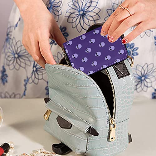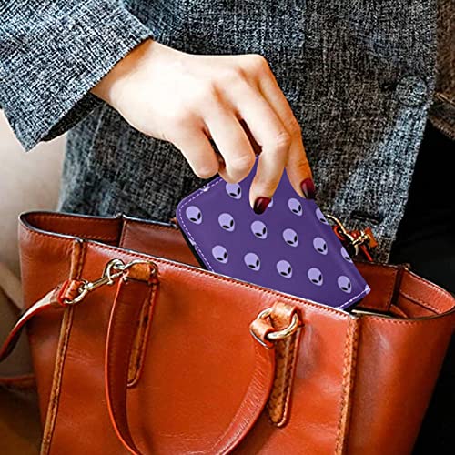 OTVEE Purple Alien Head Credit Card Wallet, Microfiber Leather Zipper RFID Card Case Holder for Men Women