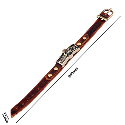 More information about JSEA Vintage Metal Embossed Masonic Freemasonry Skull Brown Leather Bracelet Bangle