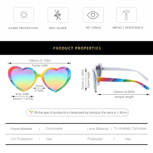 Gleyemor Kids Rainbow Sunglasses Polarized Cute Heart Shaped Sunglasses for Kids Girls Age 3-8