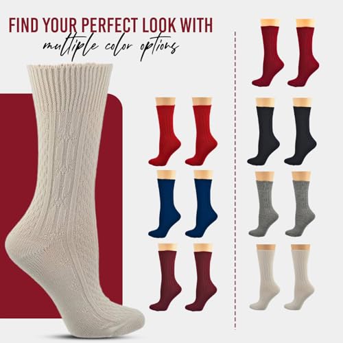 Women's enduring Cable Knit Acrylic Crew Socks thermal Cozy Crew Socks Lightweight Breathable Casual Socks Comfort Gift 2 Pairs