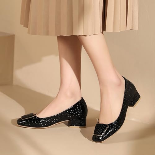 DEERBUNNY Women's Square Toe Low Heel Pumps Work Office Pump Shoes Slip On Dress Shoes
