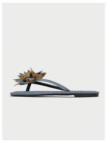popular ! GORGLITTER Women's Denim Sandals Cute Flower Flat Sandals Jean Thong Slide Sandals