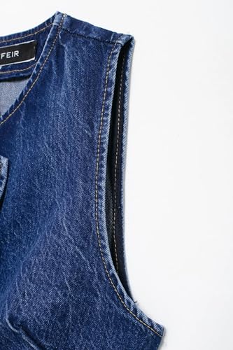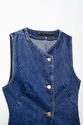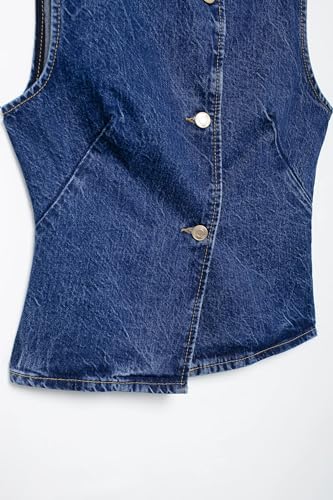 • vintage DESIGN: Sleeveless denim vest featuring a V-neckline and asymmetrical button front closure for a sleek, versatile look