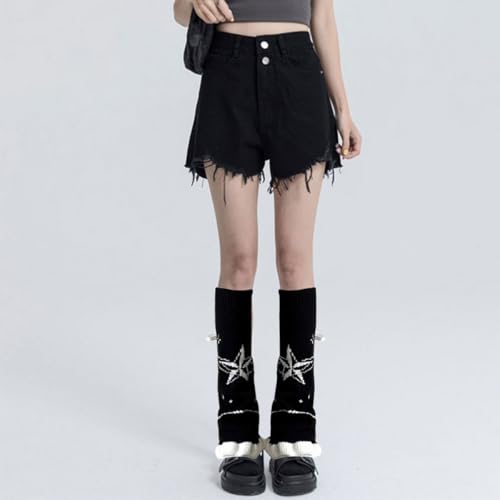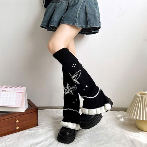 Y2k Star Pattern Knitted Leg Warmers Cute Leg Warmers for Women Baggy Ripped Leg comfortable Socks Long Boot Socks