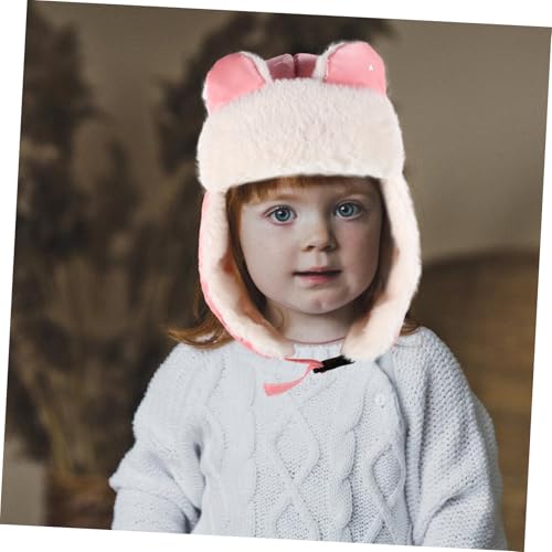 KESYOO Boy Girl's comfortable Trapper Hat Earflaps and Built Mask Windproof and Breathable for Cold Weather Skiing and Outdoor Activities Cartoon Design Pink