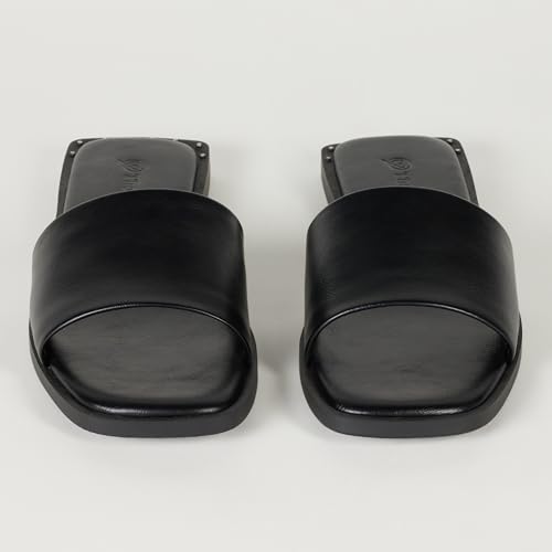 Fabric type: 100% PolyurethaneOrigin: ImportedSole material: Thermoplastic ElastomersOuter material: 100% PolyurethaneStaples By The DropElevate your basics with this new wardrobe staple, easy to dress up or down.Sole height is approximately 0.5 inches (1.3 cm)Flat slip on sandal with open backWide front strapStudded detail at back flawless for everyday use. supreme materials and excellent craftsmanship ensure long-lasting durability.