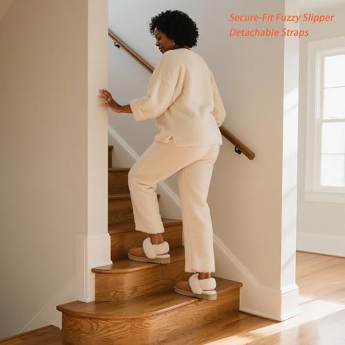 MelSyd Fuzzy House Slippers for Women: 100% Australian Sheepskin - Secure Fit Footwear with Heel Straps - cushy in Winter Wearing Indoor/Outdoor - Gift for Birthday/Christmas