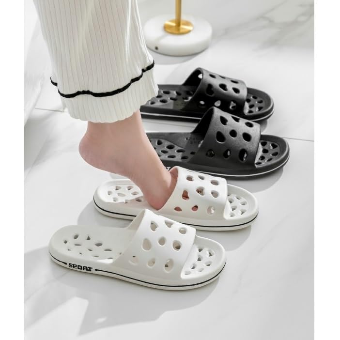 Beach Sandals Non-Slip Bathroom Slippers with Drainage Holes prompt Dry Shower Sandals Dorm Home Slide Shower Shoes for Men Women Outer Slippers(Black,42/43)