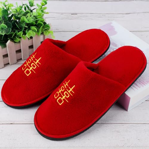 LOGOFUN Chinese Wedding Slippers Plush Home Slippers Slippers Printed with Traditional Chinese Happy Characters for Wife Husband Indoor Shoes - Red