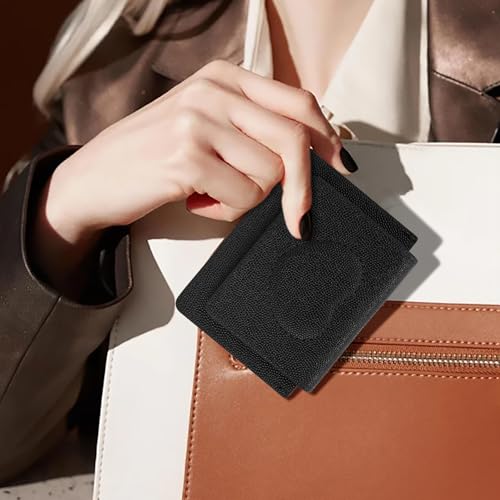 Women Leather Coin Purse, Portable Mini Change Wallet with 3 Pockets Cute Heart Change Purse Card Holder Wallet (Black)
