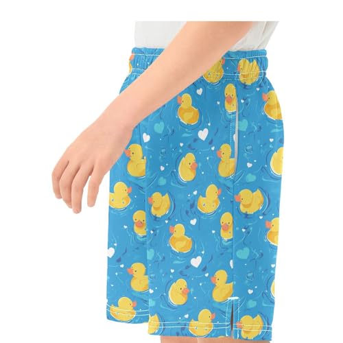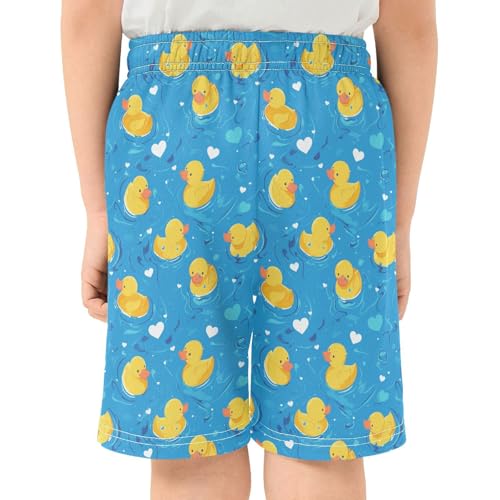 Boys Athletic Shorts with Pockets Yellow Duck Poor Running Basketball Shorts for Youth Elastic Waist Size 7-8