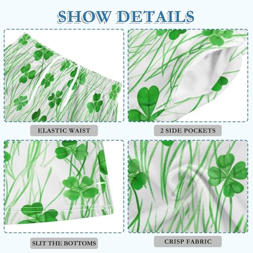 CHIFIGNO Green Shamrock Teen Boys Beach Shorts Thick Boys Polyester Shorts with Pockets XS