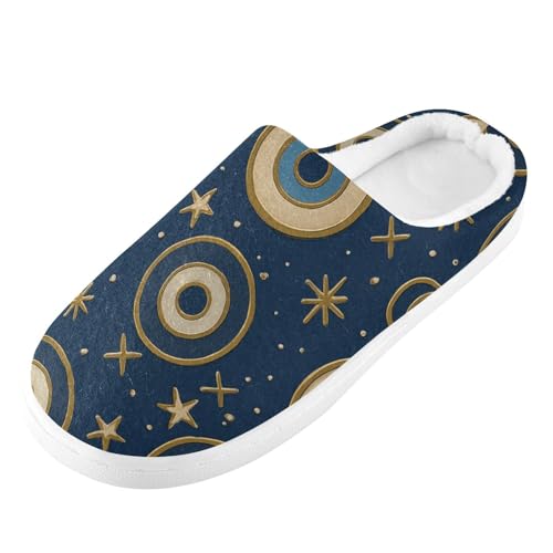 JUNZAN North African Evil Eye Navy Mens Home Cotton Slipper Closed Toe Memory Foam Indoor Shoes for Travel Funny Presents 6-7