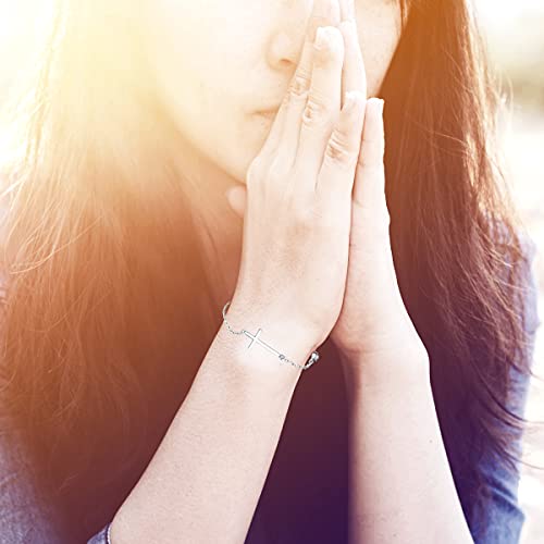 925 Sterling Silver Cross Bracelet Womens in Good Faith CZ Chain Bracelet with Cross for Confirmation Anniversary Birthday