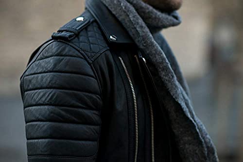 • ► This biker style leather motorcycle jacket Mens is a latest fit jacket. For an accurate size, please refer to the size chart provided in the picture.