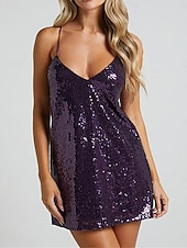 Highlights [Fabric]: Crafted with high-quality polyester and adorned with luxurious sequins, this mini dress offers a shimmering effect and a micro-elastic fit that ensures comfort throughout the evening. The combination of materials provides a chic and elegant appearance, flawless for any glamorous occasion. [Silhouette]: The dress features a slim fit type, enhancing the body's natural curves, and a flattering mini length that exudes sophistication. With its sleeveless design and light material, it's ideal for hot summer nights or layered for cooler seasons. [Design Highlights]: The dress is elegantly designed with spaghetti straps and a daring backless feature, adding a touch of allure and sophistication. The rich sequin overlay in a vibrant purple hue or other available colors ensures you stand out at every event, while the V-neckline enhances its sleek design. [Occasions]: Perfect for a wide array of events such as cocktail parties, vacations, club nights, birthdays, beach outings, and Mardi Gras carnivals. Whether you are attending a lively party or a relaxed gathering, this dress offers versatility and style. [Size Range]: Available in sizes S, M, L, XL, XXL, and 3XL, catering to a variety of body types and ensuring the perfect fit for most customers. Perfect for everyday use. supreme materials and excellent craftsmanship ensure long-lasting durability.